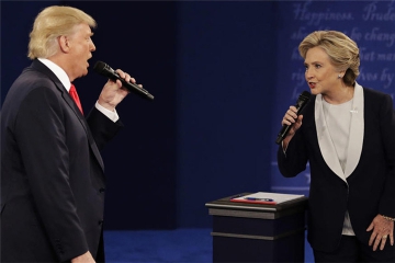 特朗普和希拉里的第二场电视辩论在华盛顿大学进行,较之两人的首场交锋,这一场辩论增设了观众、网络提问环节,让整场辩论演变成一场大混战:特朗普对战观众、希拉里对战特朗普、特朗普对战双主持人。